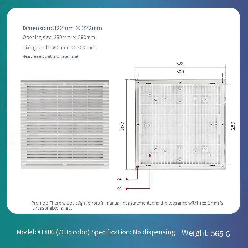 설치하려면 장착 표면을 청소하고 먼지 커버를 정렬한 후 제자리에 눌러주기만 하면 됩니다. 먼지 축적 여부를 분기별로 점검하여 진공 청소기나 압축 공기를 사용하여 청소하는 것이 좋습니다. 환기 효율이 눈에 띄게 저하되거나 손상이 발생한 경우 즉시 교체하여 보호 효과를 유지하십시오.